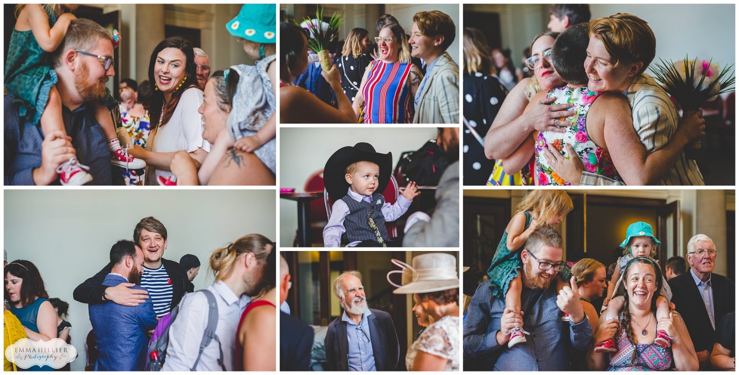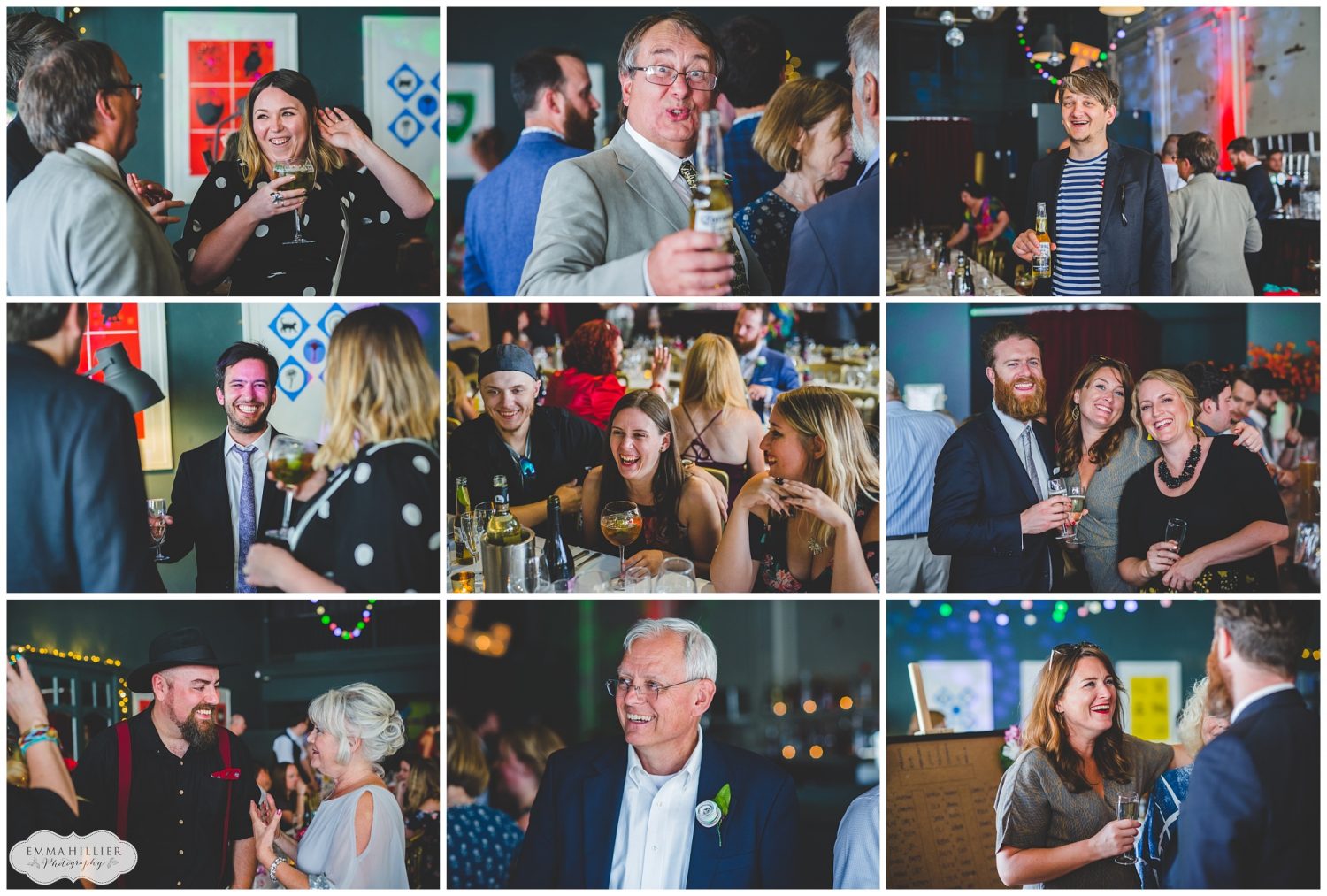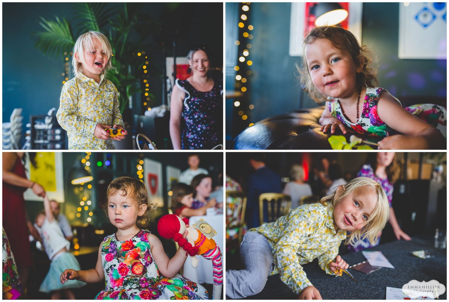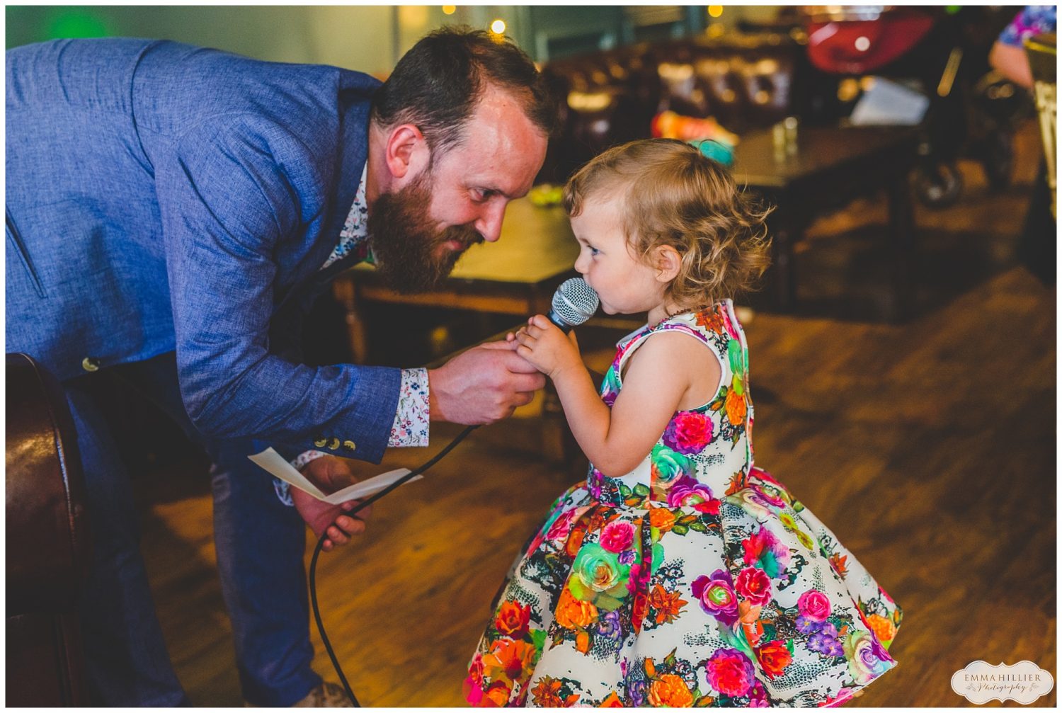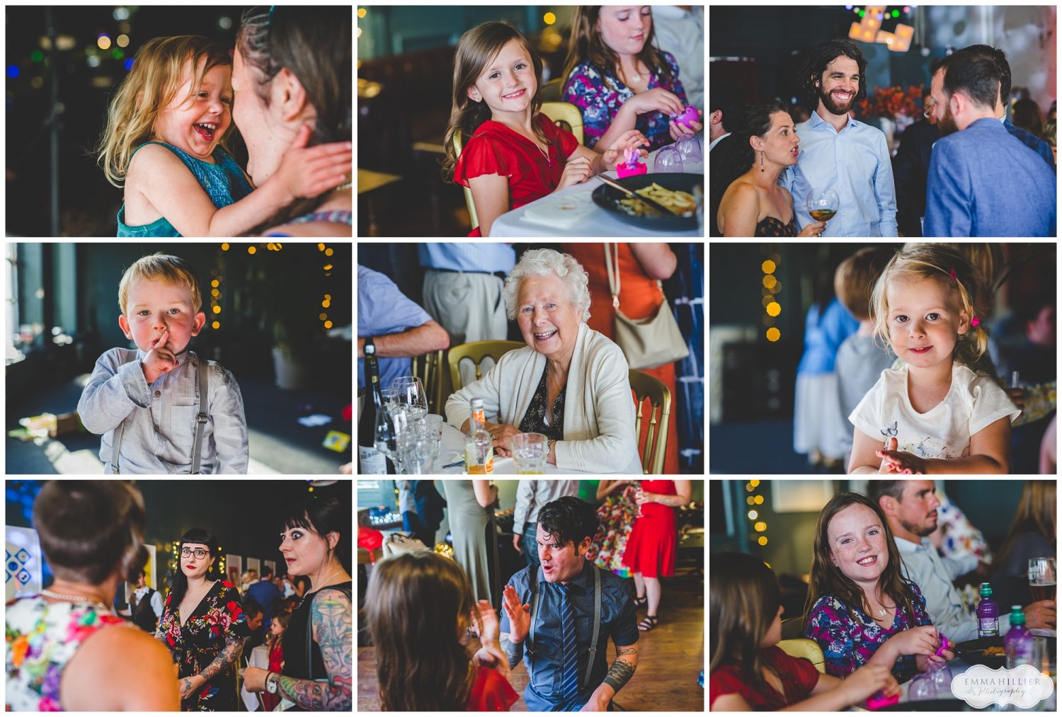 Rachel made her amazingly colourful dress herself (with a matching one for their little daughter!) which she matched with bright pink Dr. Martens and they walked down the “aisle” at St George’s Hall together. They didn’t have bridesmaids or groomsmen but they did let their children Magnus and Marla take part in the speeches which ended in Magnus hogging the mike and causing mass hysterics!