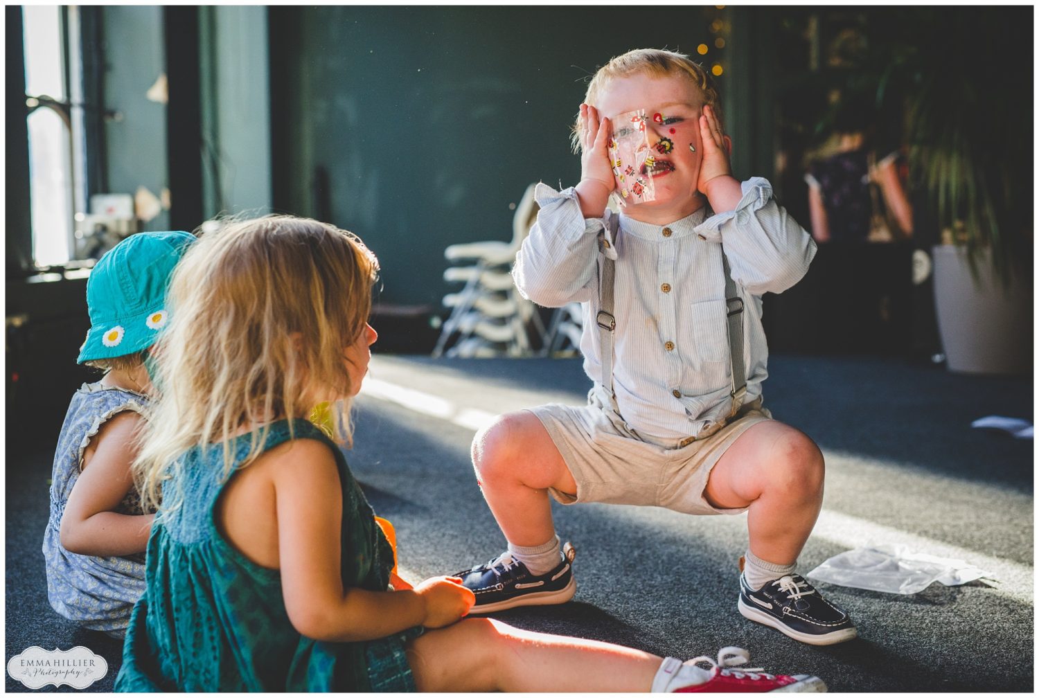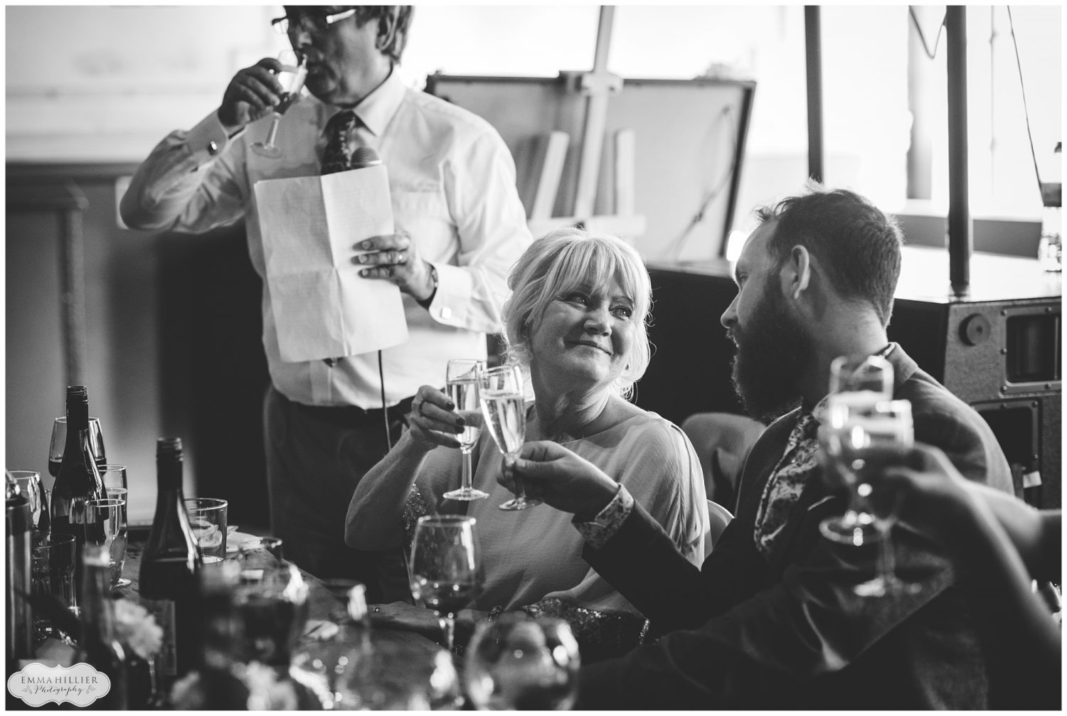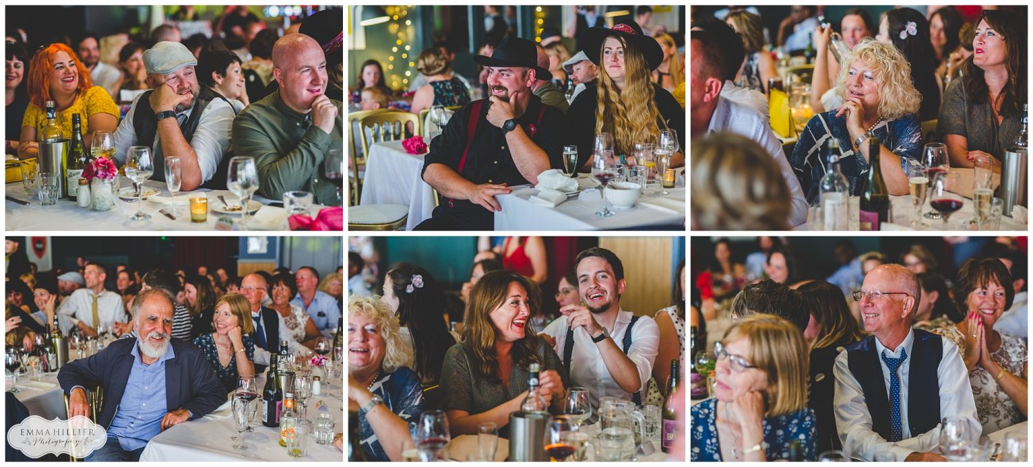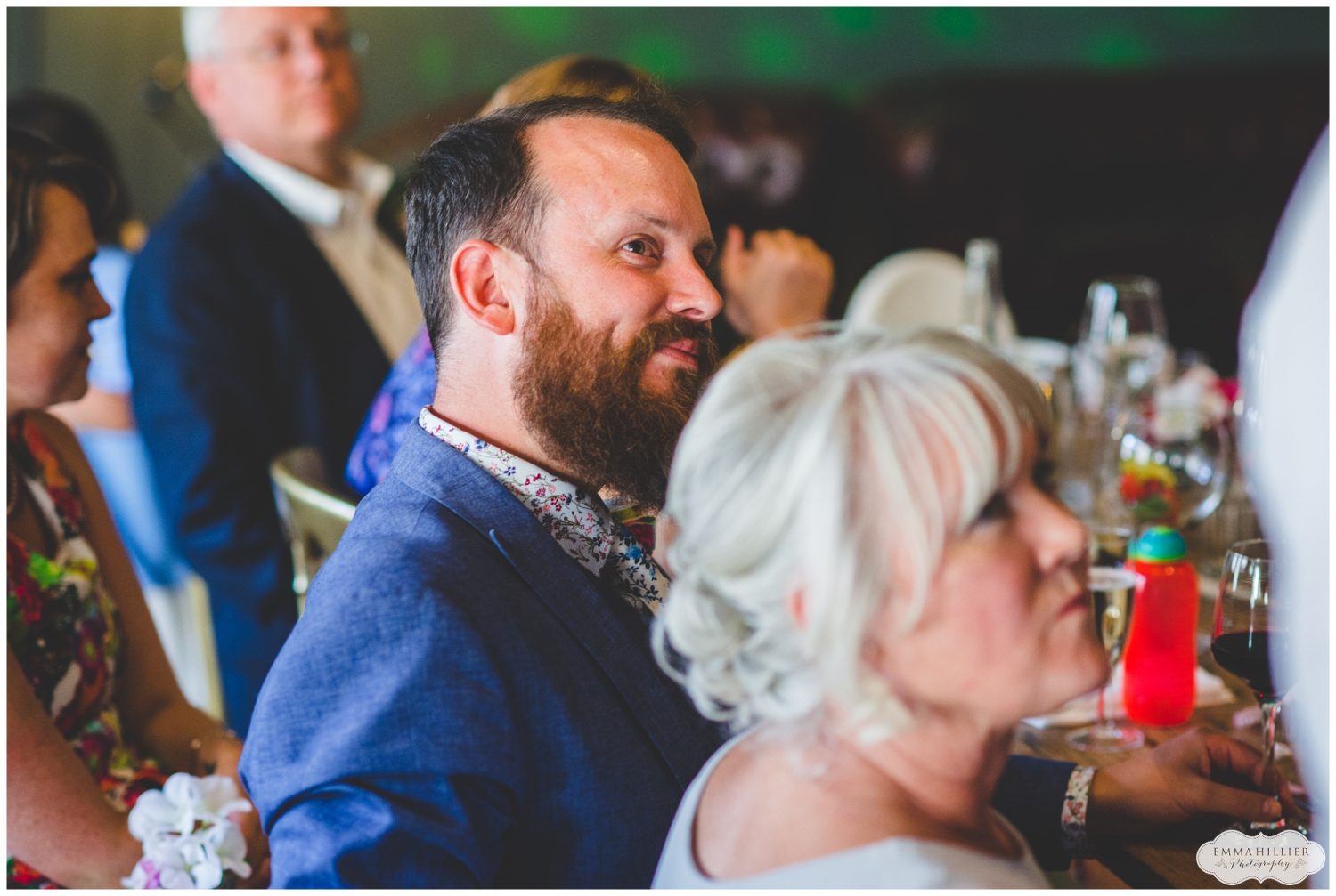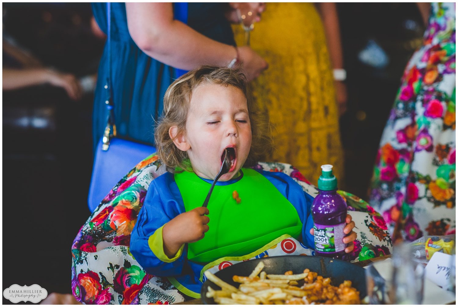 Rachel made her amazingly colourful dress herself (with a matching one for their little daughter!) which she matched with bright pink Dr. Martens and they walked down the “aisle” at St George’s Hall together. They didn’t have bridesmaids or groomsmen but they did let their children Magnus and Marla take part in the speeches which ended in Magnus hogging the mike and causing mass hysterics!